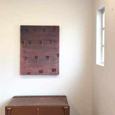Emma McIntyre’s body of work for ‘Line Dancing’ is a demonstration of her ever-present want for a painting to be full of movement, to dance, to be alive. In her process-driven practice, Emma seeks oily depths to dive into, or an optical surface on which the eye cannot settle. While drawing motifs from patterning, geometric and modernist abstraction, Emma’s palette and spatial depths cannot help but evoke landscapes, windows, fabrics, pulling the outside world into consideration within each surface.