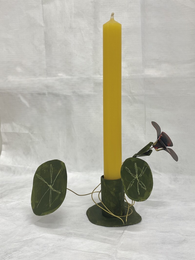 Copper, brass, heat set & enamel paint, oil pastel